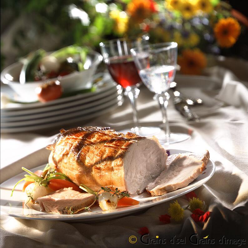 - Arrosez régulièrement, retournez à mi-cuisson. Laissez reposer la viande couverte avant de la trancher. Vous pouvez éventuellement faire caraméliser le jus.